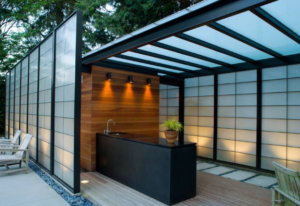 - Преміум-варіант (від ~7000-10000 грн/м² та вище). Для каркасу потрібен складний архітектурний дизайн, можлива комбінація матеріалів (метал, дерево). Товстий монолітний або преміальний сотовий полікарбонат 10 мм, кольорові рішення. Індивідуальний проєкт, додаткові елементи (водостік, підсвітка, москітні сітки).